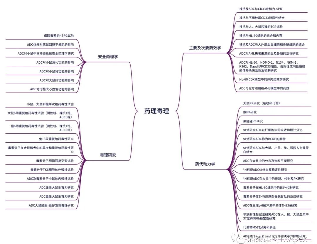 Mylotarg是由Pfizer公司开发的靶向CD33的ADC产品,通用名Gemtuzumab ozogamicin。2005年5月17日退市,2017年9月1日重新获批上市,用于急性髓系白血病的治疗。由于是第一款ADC产品,毒素分子Calicheamicin的背景数据不多,因此非临床研究内容比较全面。